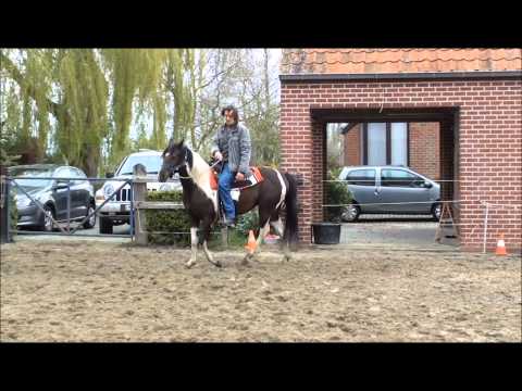 Débourrage Chanon Tomy Cat - paint horse 3 ans.wmv - Paint Horse Belgique - Débourrage Chanon Tomy Cat, jument paint horse 3 ans, progression du débourrage au 5e, 11e et 28e jour de travail. Région de Tournai (Belgique)